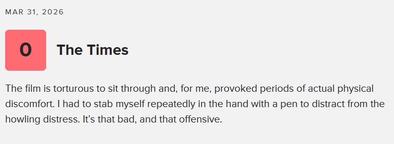 Hal ini disempurnakan saat H-1 sebelum tayang, para kritikus film dari portal berita internasional yang masyhur kayak The Times atau The Guardian, membanjiri jagat maya dengan review sadis dan brutal.